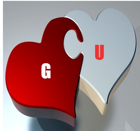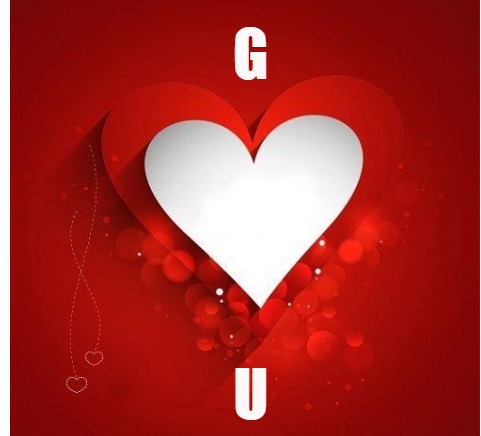 حرف G مع حرف U على صورة قلب أبيض وقلب احمر للمشاركة مع أصحابكم على الفيس والواتس الانستغرام