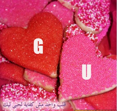 حرف G مع حرف U اكتب حرفك وحرف حبيبك على صورة قلب واحد مش كفاية لحبى ليك وشاركها مع اصحابك علي الفيس بوك و الواتس اب وانستجرام