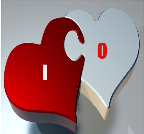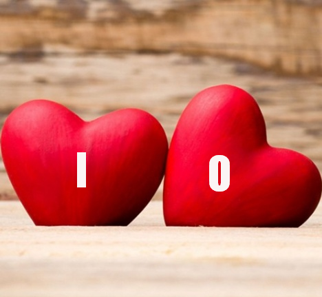 حرف I مع حرف O على صورة قلب أبيض وقلب احمر للمشاركة مع أصحابكم على الفيس والواتس الانستغرام