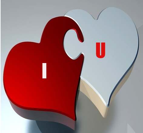 حرف I مع حرف U على صورة قلب أبيض وقلب احمر للمشاركة مع أصحابكم على الفيس والواتس الانستغرام