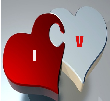 حرف I مع حرف V على صورة قلبين مع بعض