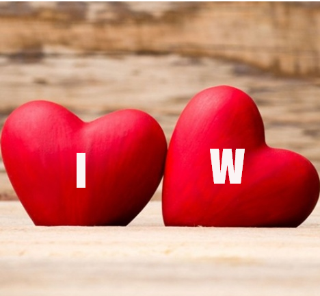 حرف I مع حرف W على صورة قلب أبيض وقلب احمر للمشاركة مع أصحابكم على الفيس والواتس الانستغرام