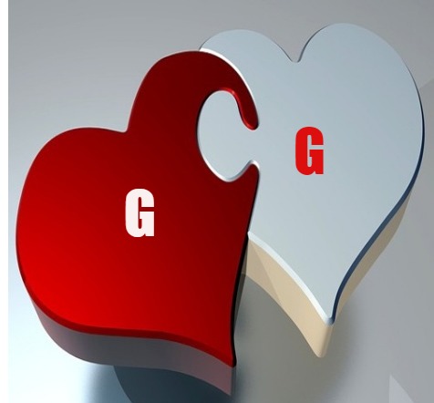 حرف. G مع حرف على صورة قلب أبيض وقلب احمر للمشاركة مع أصحابكم على الفيس والواتس الانستغرام