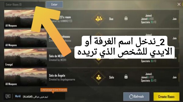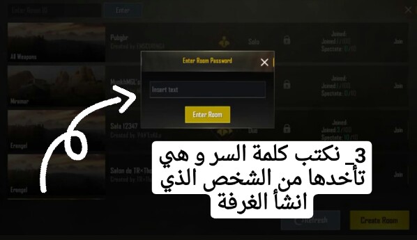 شرح كتابي لعمل روم (غرفة) في لعبة ببجي موبايل pubg mobile