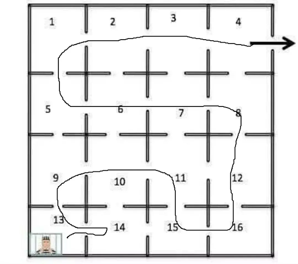 توفي سجين في الزنزانة 13. كيف يمكن إخراج جثته من خلال الزنزانة 4 بطريقة تمر عبر كل زنزانة تسمح للسجناء الآخرين بإلقاء نظرة على الجثة؟ يجب ألا يرى النزيل الجثة أكثر من مرة.