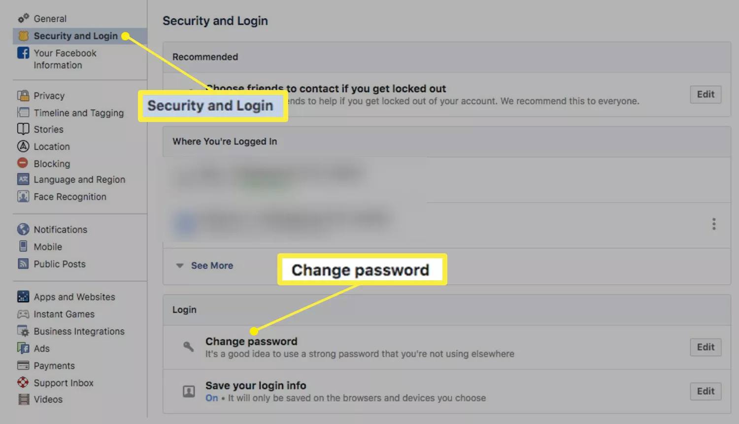 إذا قمت بالفعل بتسجيل الدخول إلى حساب Facebook الخاص بك أو يمكنك تسجيل الدخول وتريد فقط تغيير كلمة المرور الخاصة بك ، فإن هذه الخطوات تنجز المهمة.