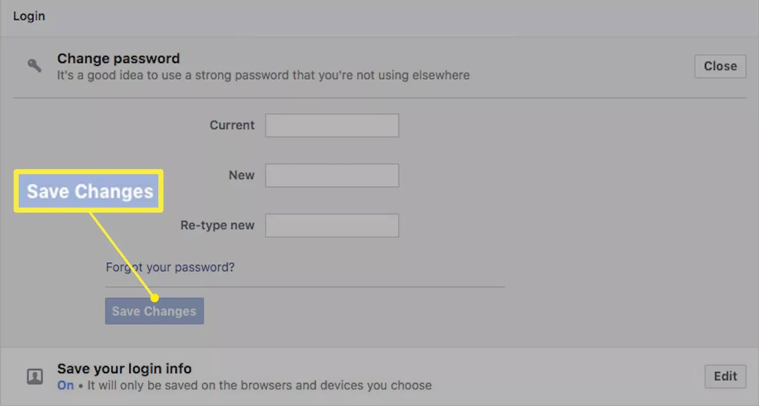 - أدخل كلمة المرور الحالية وكلمة المرور الجديدة. أعد كتابة كلمة السر الجديدة. عند الانتهاء ، حدد حفظ التغييرات .