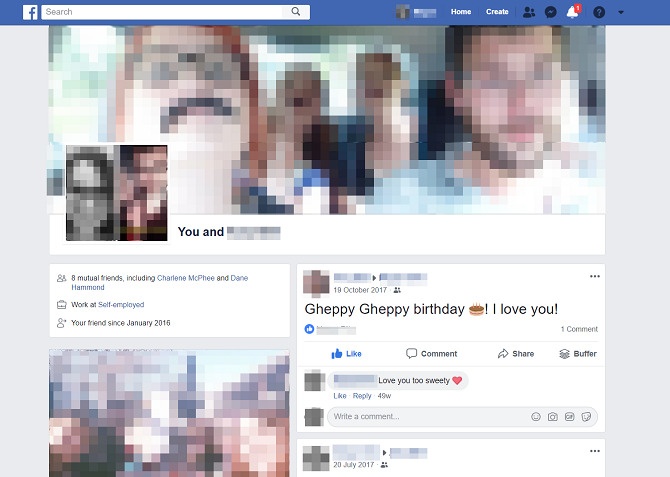 تجمع صفحة "انظر الصداقة" صورك المتبادلة ، ومنشورات الحائط ، وتاريخ الصداقة. كمية المعلومات على الصفحة ستختلف من صديق إلى آخر.