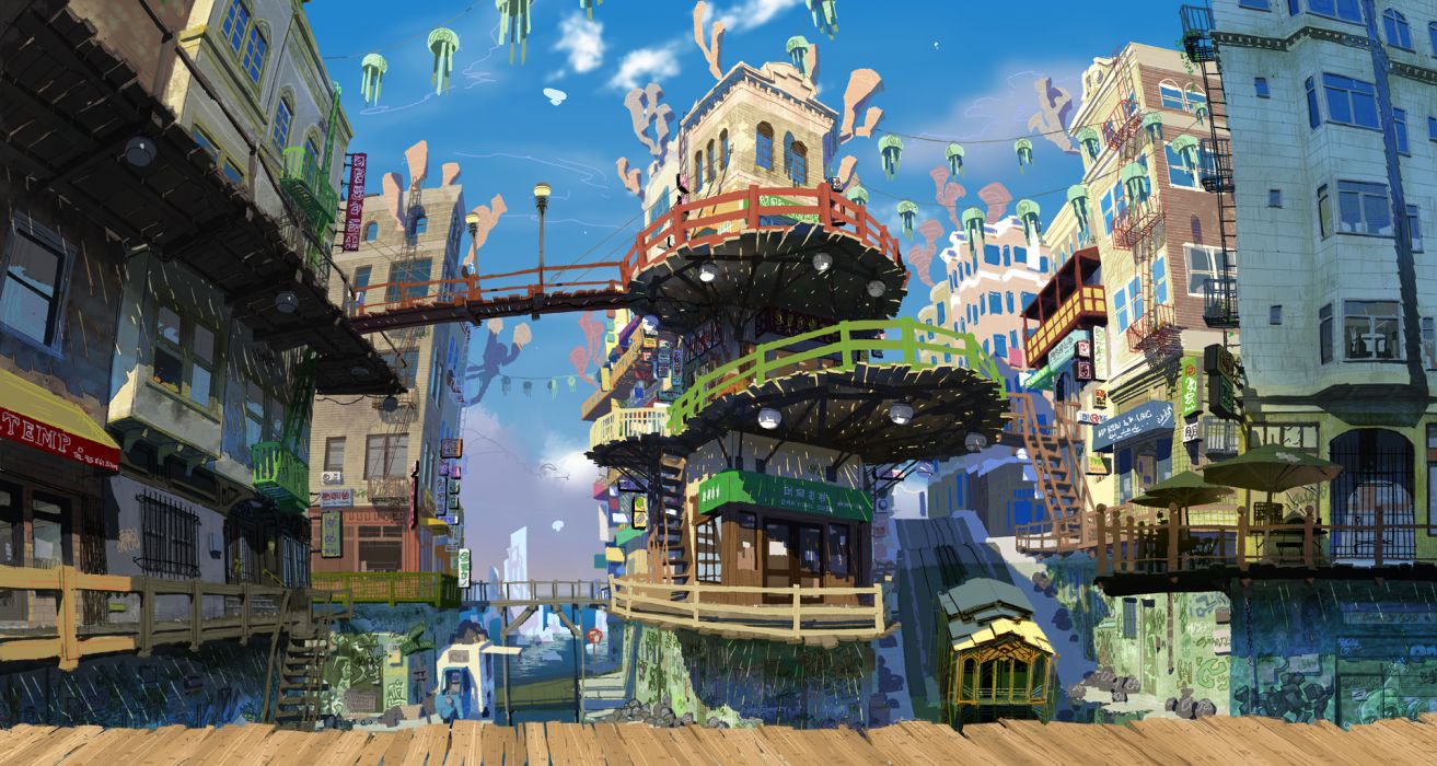 1313x700 خلفية مدينة أنيمي الأصلية ذات المناظر الخلابة خلفية الفن. 1920x1024. 110701