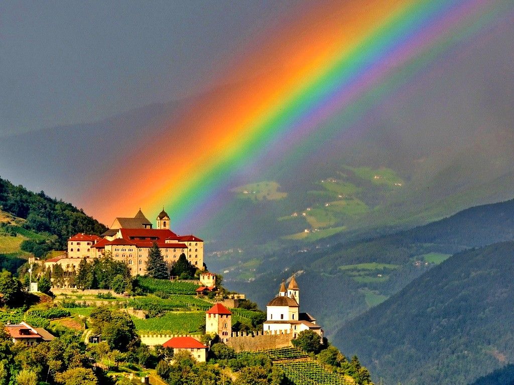 1920x1080 قوس قزح: جبال مذهلة قوس قزح قوس المطر الحقول الريفية