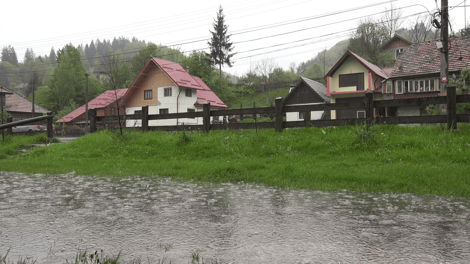 1920x1080 4K سقوط أمطار غزيرة في سيارة مرورية في قرية جبلية في طقس سيئ
