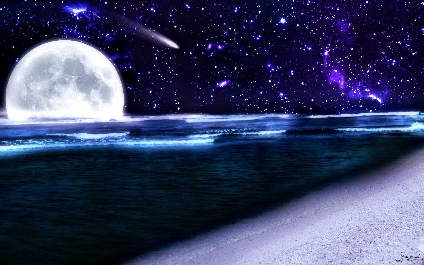 1440x900 Sky: Night Beach Ocean Sky Moon Stars Wallpaper Mobile for HD 16: 9