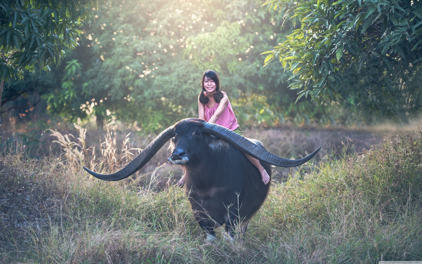 3840x2400 فتاة تركب جاموسة قرون طويلة ❤ 4K HD Wallpaper Desktop for 4K