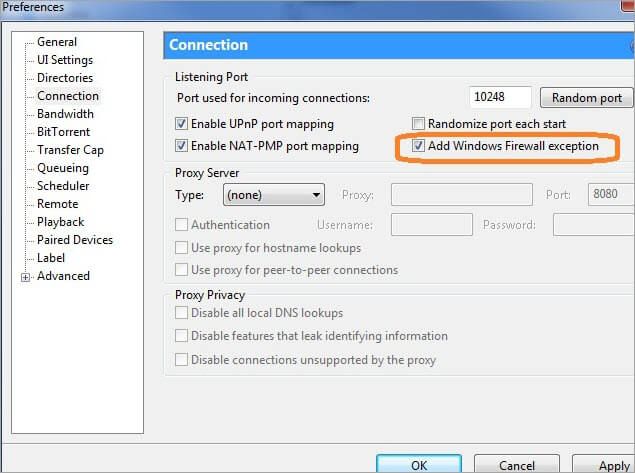 ومع ذلك ، مع بعض العملاء مثل BitTorrent ، قد تحتاج أيضًا إلى التحقق من جدار الحماية وتكوينه. سيسمح لك وجود مسار مفتوح لعمليات نقل الملفات بالحصول على معدلات تنزيل أسرع.