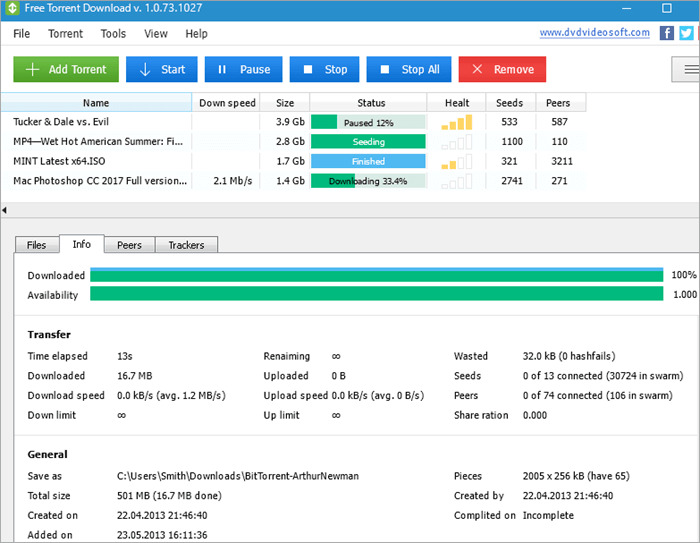 باستخدام xTorrent لفتح ملف Torrent: