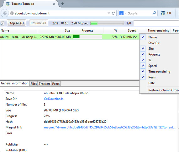 خطوات استخدام تورنادو لفتح ملف تورنت: