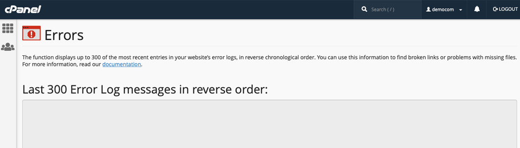تعرض صفحة سجل الأخطاء الأخطاء بترتيب زمني عكسي بالإضافة إلى ما يصل إلى 300 رسالة من أحدث الرسائل. قد يعرض سجل الأخطاء المزيد من الرسائل إذا قمت أنت أو مضيفك بتعديل الإعدادات.اعرض سجل أخطاء cPanel لاستكشاف الخطأ 520.