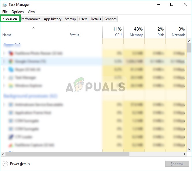 - في علامة التبويب " العمليات" ، إذا كان " agent.exe " أو " Blizzard Update Client " قيد التشغيل ، فحدده واضغط على زر " إنهاء العملية " الموجود أسفل البرنامج.