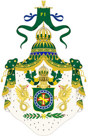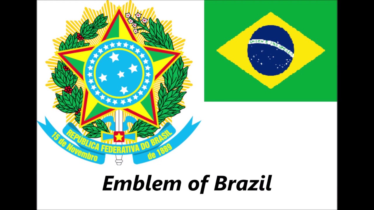 شعار البرازيل : العلم الوطني عبارة عن نجمة عليها الوان العلم مع أشجار البن عل الجانبين .