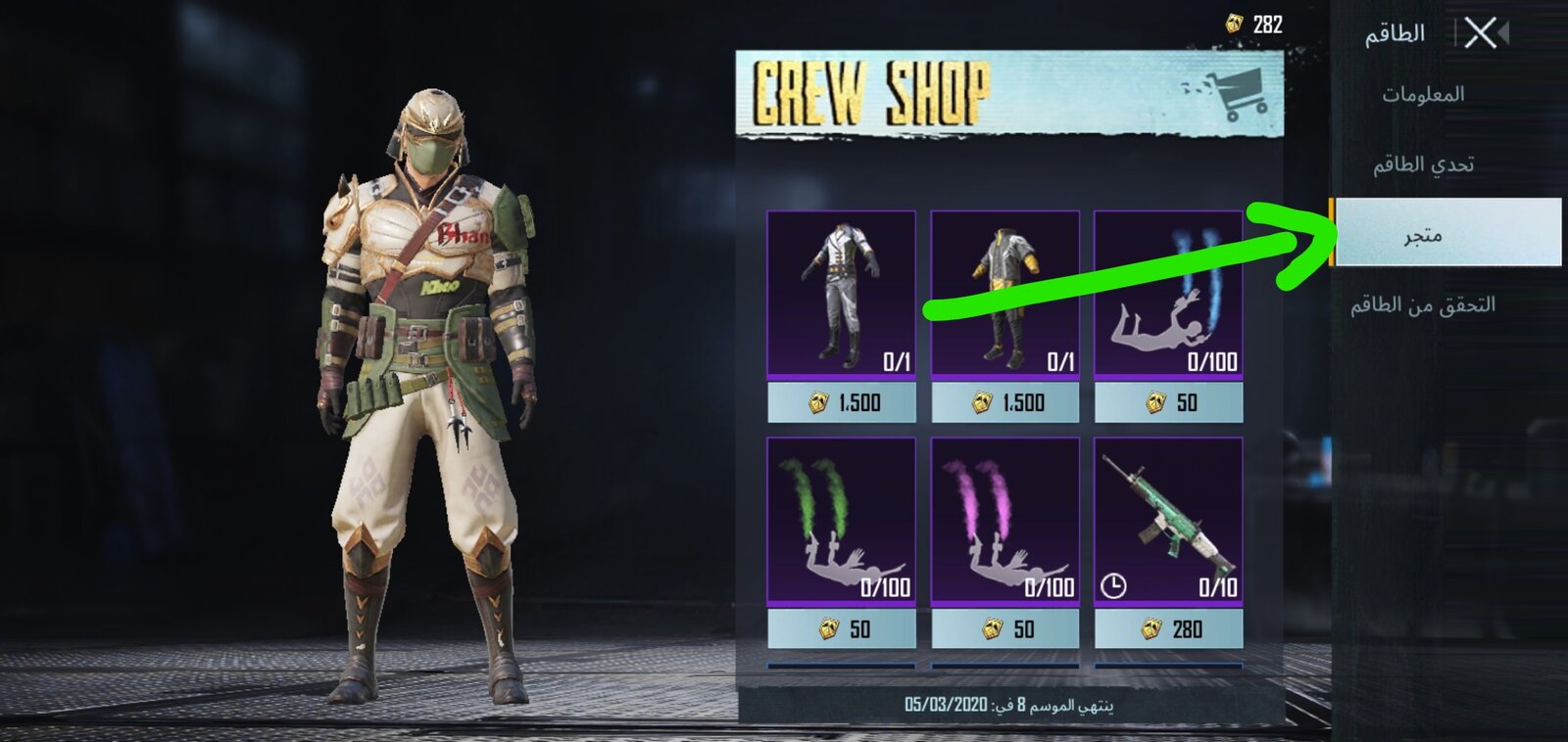 6.ثم نذهب إلى متجر الطاقم كما هو موضح