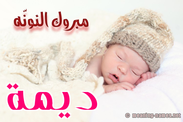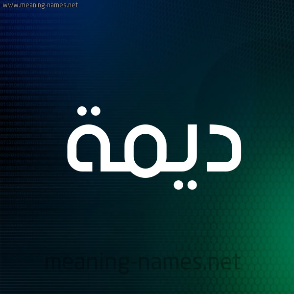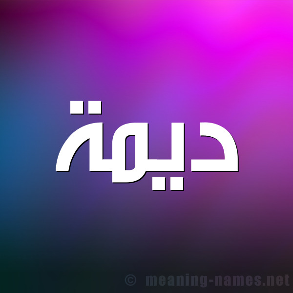 إسم علم مؤنث له أصول عربية ، يعني المطر الساكن الذي يستمر لمدة خمسة أيام أو أقل من ذلك وقد يستمر لمدة يوم واحد فقط بصفة عامة ديمه هي المطر الذي لا يصطحبه الرعد ولا البرق ويدوم ليوم واحد وجمع كلمه ديمه ديم ويأتي من الفعل يدوم ، يستمر .