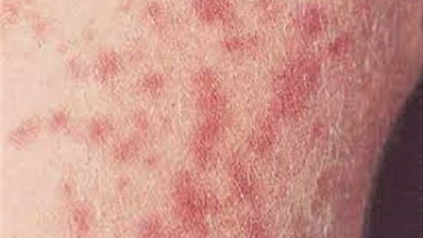 - الطفح الجلدي: قد يظهر طفح جلدي مسطح وردي اللون على البطن والصدر.